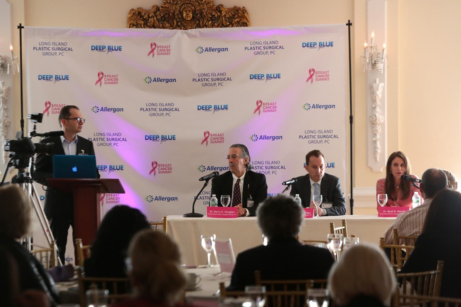 After a short break to visit the multiple vendors, we listened to a panel of our physicians at Long Island Plastic Surgical Group talk about the medical portion of breast cancer and breast reconstruction. These doctors, including Dr. Barry Douglas, Dr. Matthew Kilgo, Dr. Noel Natoli, and Dr. Michael Dobryansky gave insight into the progressive technology of breast reconstruction post recovery. They have begun implementing new parts to the procedure in order to give the breast a more natural look by using the patient’s own fatty tissue from their stomach, outer thigh, or buttock and inserting it around the implant for a more “natural” look. ALCL or anaplastic large cell lymphoma was also discussed, as it is a rare yet treatable diagnosis if caught early.