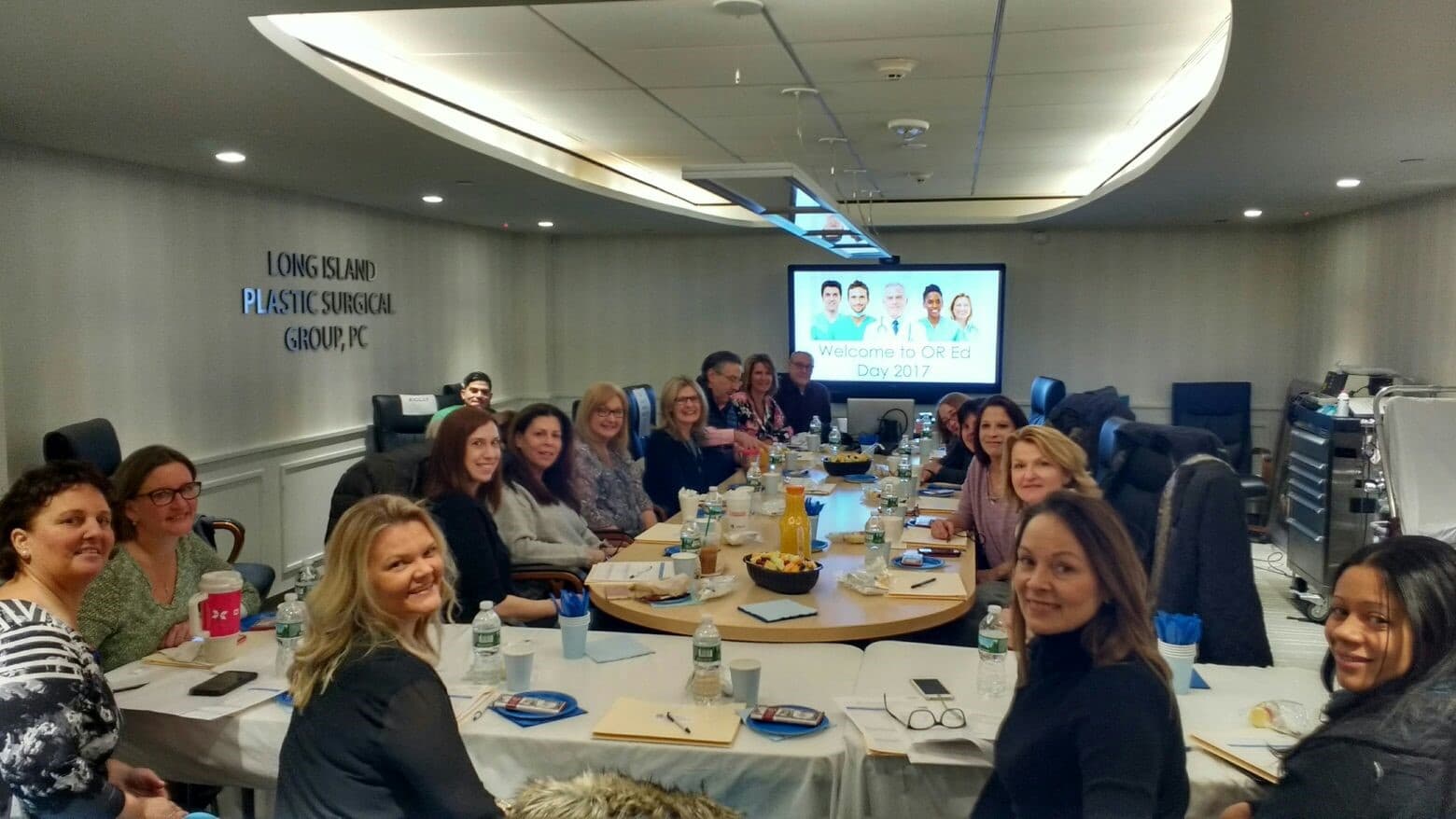 On Saturday March 18th, Long Island Plastic Surgical Group hosted the 7th annual OR Education Day here in our Garden City Office. The purpose of this meeting is to ensure that all operating room staff has full, in depth emergency response training to address rare emergency situations, such as fire in the operating room, review of crash cart equipment, as well as “code blue” review. The day is hands on, and members of LIPSG’s OR staff explore every possible scenario in order to train for the unexpected. In addition to the OR staff, ancillary staff is also in attendance so they are educated and prepared to assist, should there be a clinical emergency in the office.