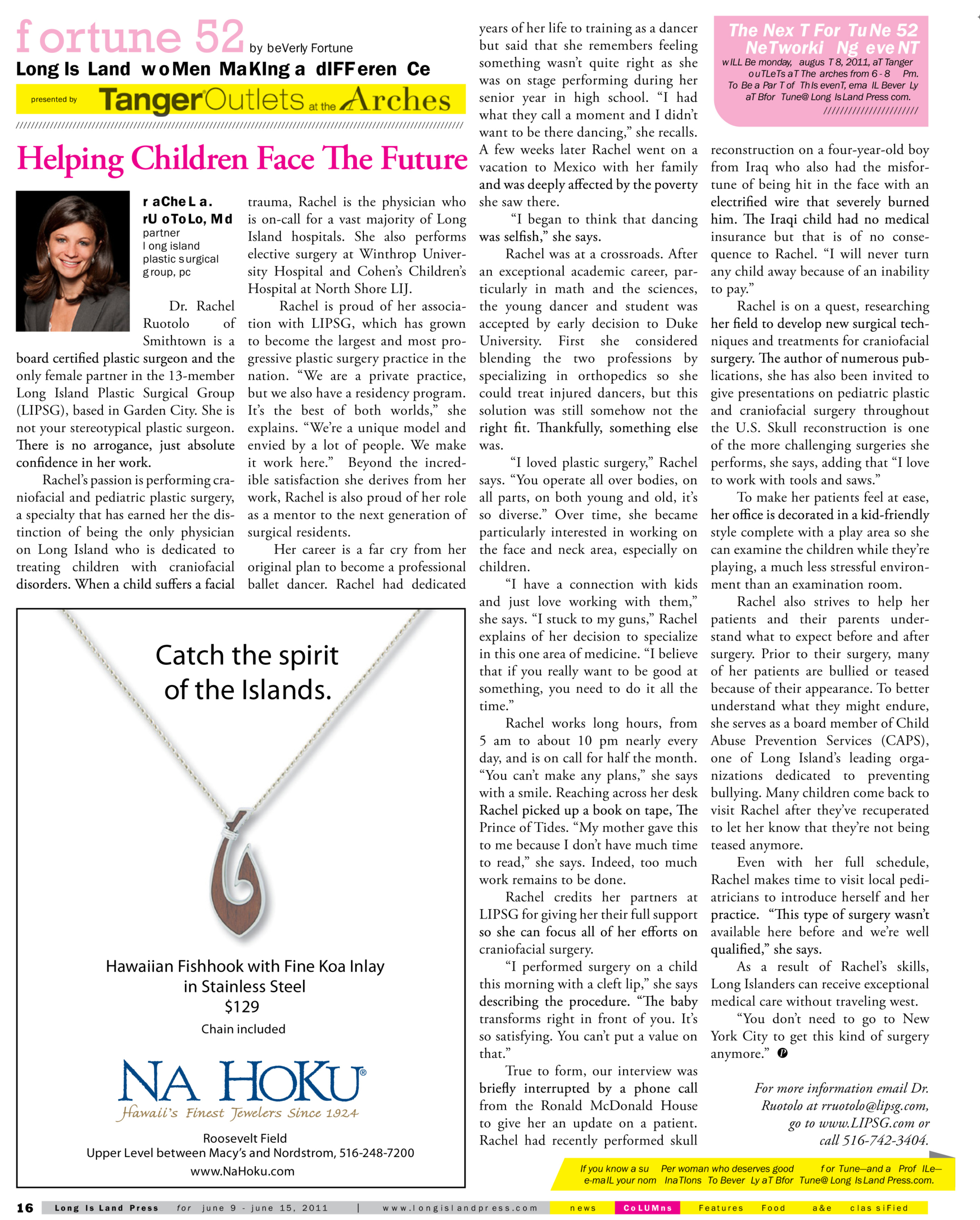 Dr. Rachel Ruotolo has been honored for performing craniofacial and pediatric plastic surgery by the Long Island Press in Fortune 52. The Fortune 52 column is written weekly and honors local women who lead multiple lives, making significant and unique contributions in their community or workplace.