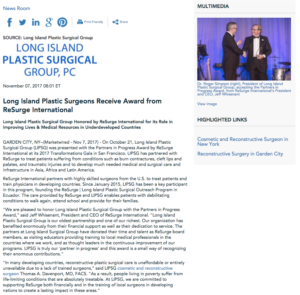 Long Island Plastic Surgical Group Honored by ReSurge International for its Role in Improving Lives & Medical Resources in Underdeveloped Countries